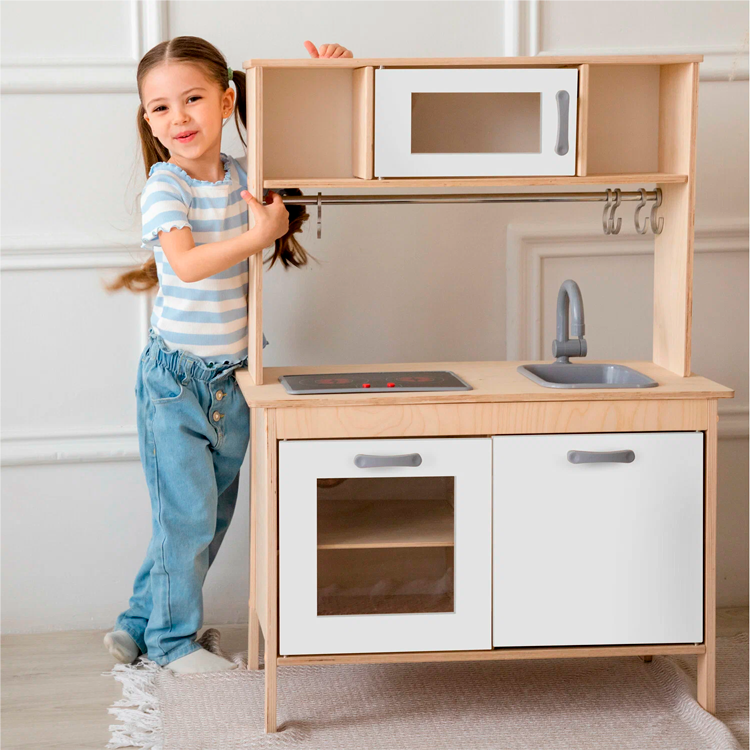 Все для маленького шеф-повара: на этой современной кухне ребенок может готовить, печь и мыть, совсем как в кулинарных шоу на ТВ. А вся семья может затем отведать аппетитные блюда по новым рецептам юного кулинара.
