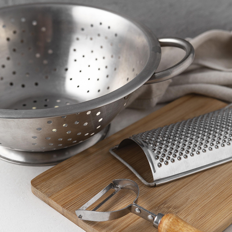 Хотите промыть ягоды или слить воду после варки картофеля? Вам на помощь придет вот такой дуршлаг из нержавеющей стали. Для удобства маленькую ручку можно упереть в край мойки.